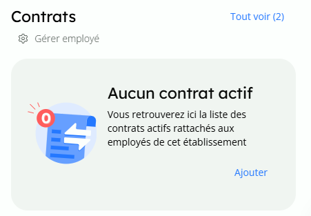 • Si la personne n’a jamais eu de contrat ou n’en a aucun actif Ă  la date du jour, alors cette information est affichĂ©e clairement, et ses contrats prĂ©cĂ©dents sont accessibles depuis le bouton “Tout voir”.