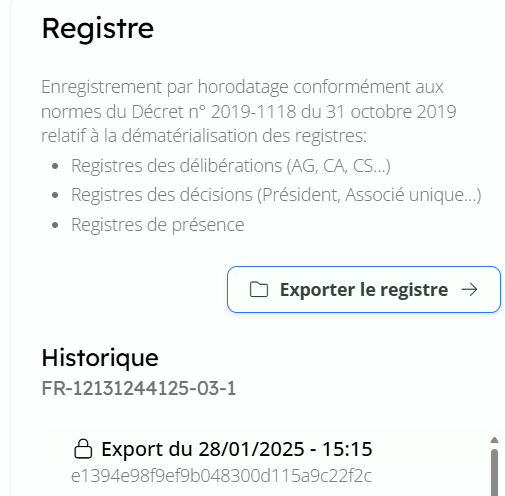 • La rĂ©fĂ©rence unique du registre,